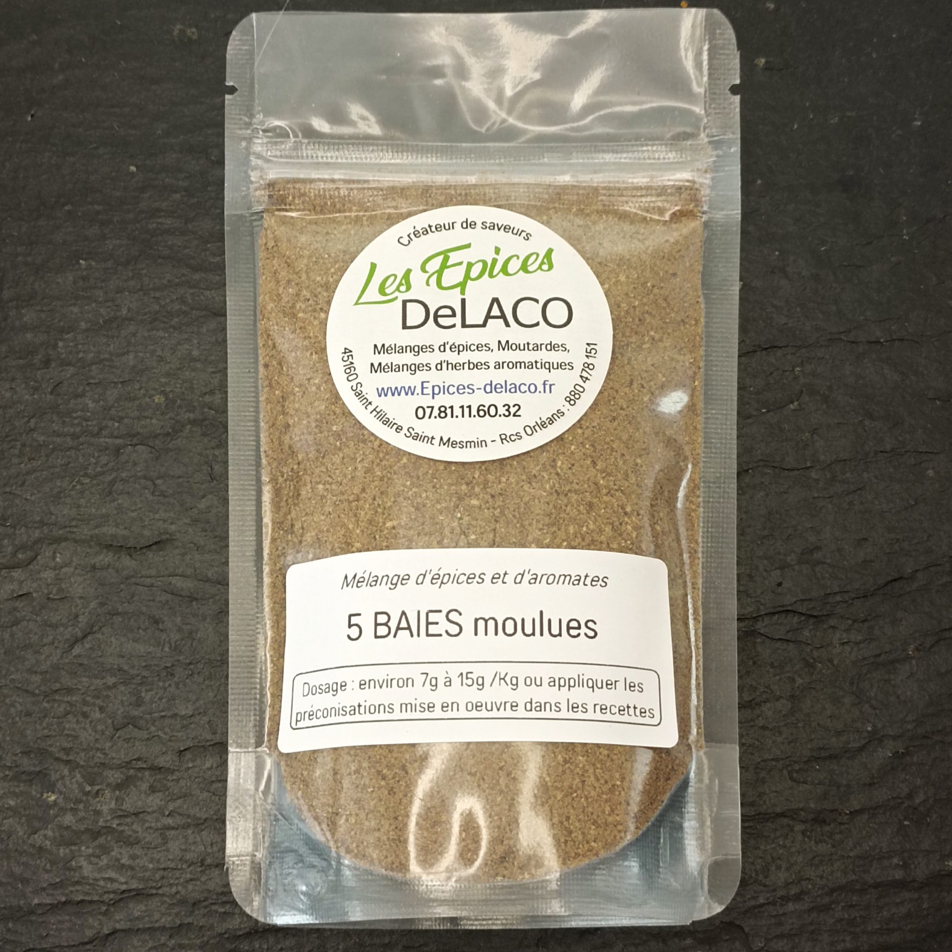5 BAIES moulues 145g M … mélange d’épices, herbes aromatiques, condiments, piments